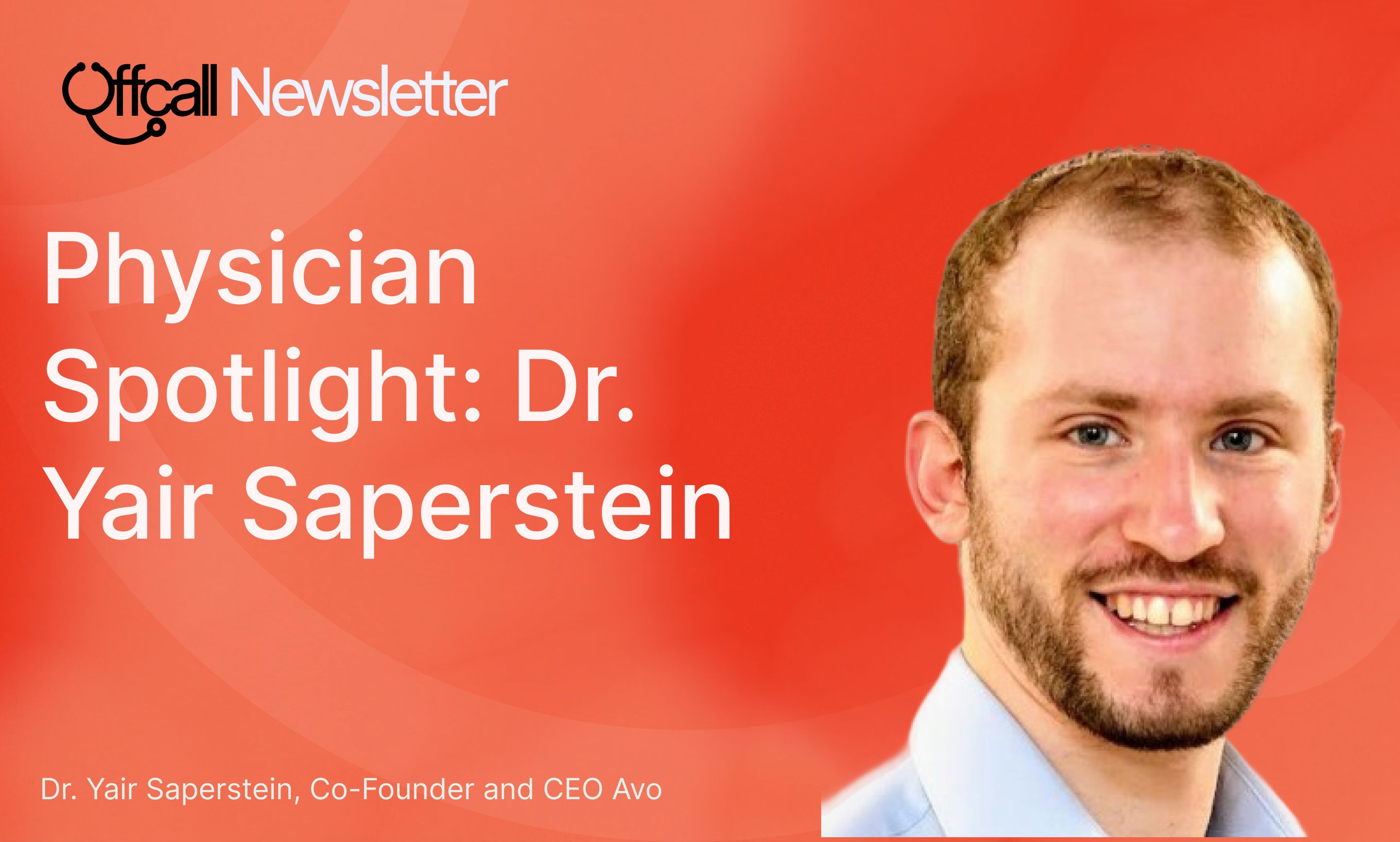5 questions with Dr. Yair Saperstein, the internal medicine and clinical informatics physician who is also the co-founder and CEO of Avo, the company building AI-powered clinical copilots for your EHR. (thank you for the previous nomination, Dr. John Dayton!)